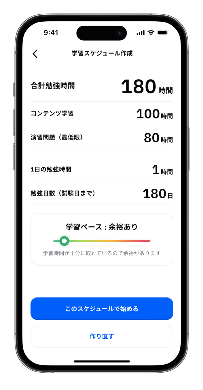 受験日程・勉強時間を入力するだけで受講生ごとにぴったりなカリキュラムを作成できます。また、受験歴がある場合は力試しからスタート。 苦手なポイントに絞って対策ができたりと、効率的に学習が可能です。