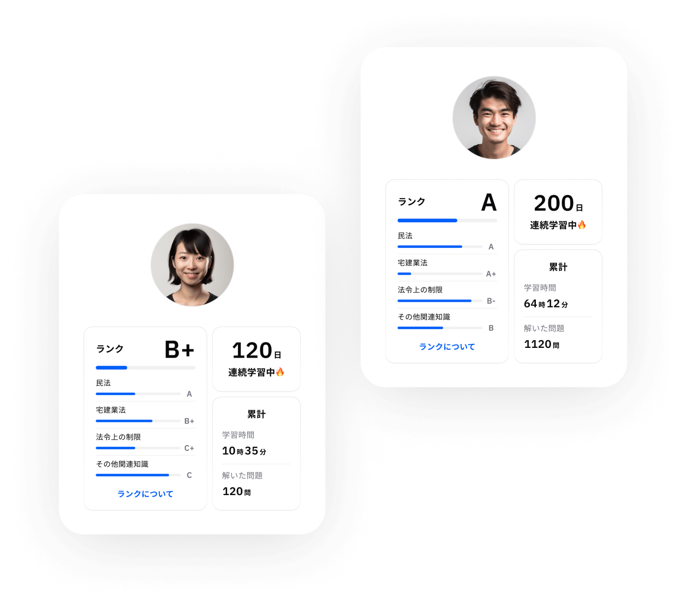 YouTubeにて不動産関連の情報を発信されている棚田様、宅建講師歴10年・法人受講生4年連続全員合格達成中の宅建塾ふどたく代表兼講師 黒澤様の監修コンテンツです。 Workschool宅建で学習することで、受験対策もバッチリです。